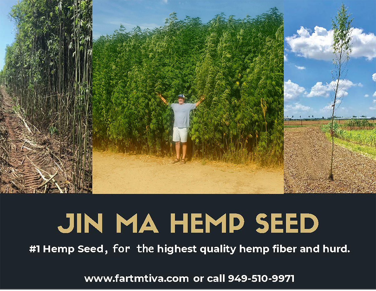 JinMA our seed variety is a Chinese land race fiber cultivar. JinMa is known as the king of all hemp fiber which grown is used to make textiles, fibers construction materials and many other products. JinMa grows very tall and thin 12-24ft depending on the climate. If grown correctly, the farmers can expect the yields outlined in the chart attached. Seeding rates for industrial hemp grown for fiber are 50-60 pounds of seed per acre. We recommended harvest at 120 days..